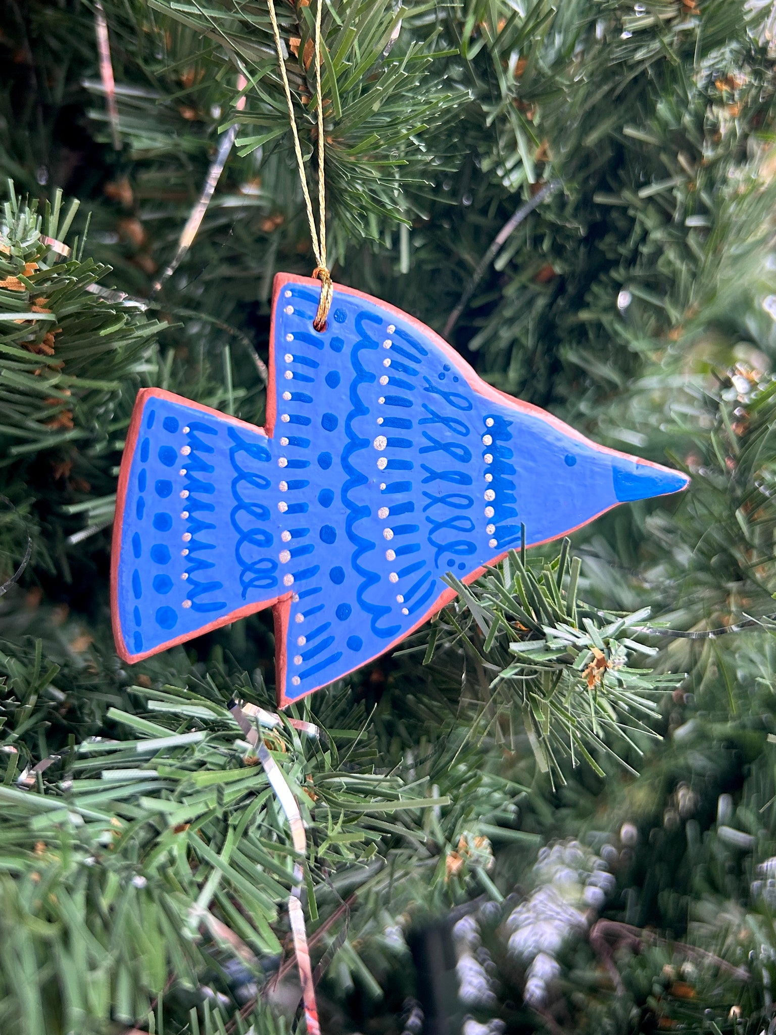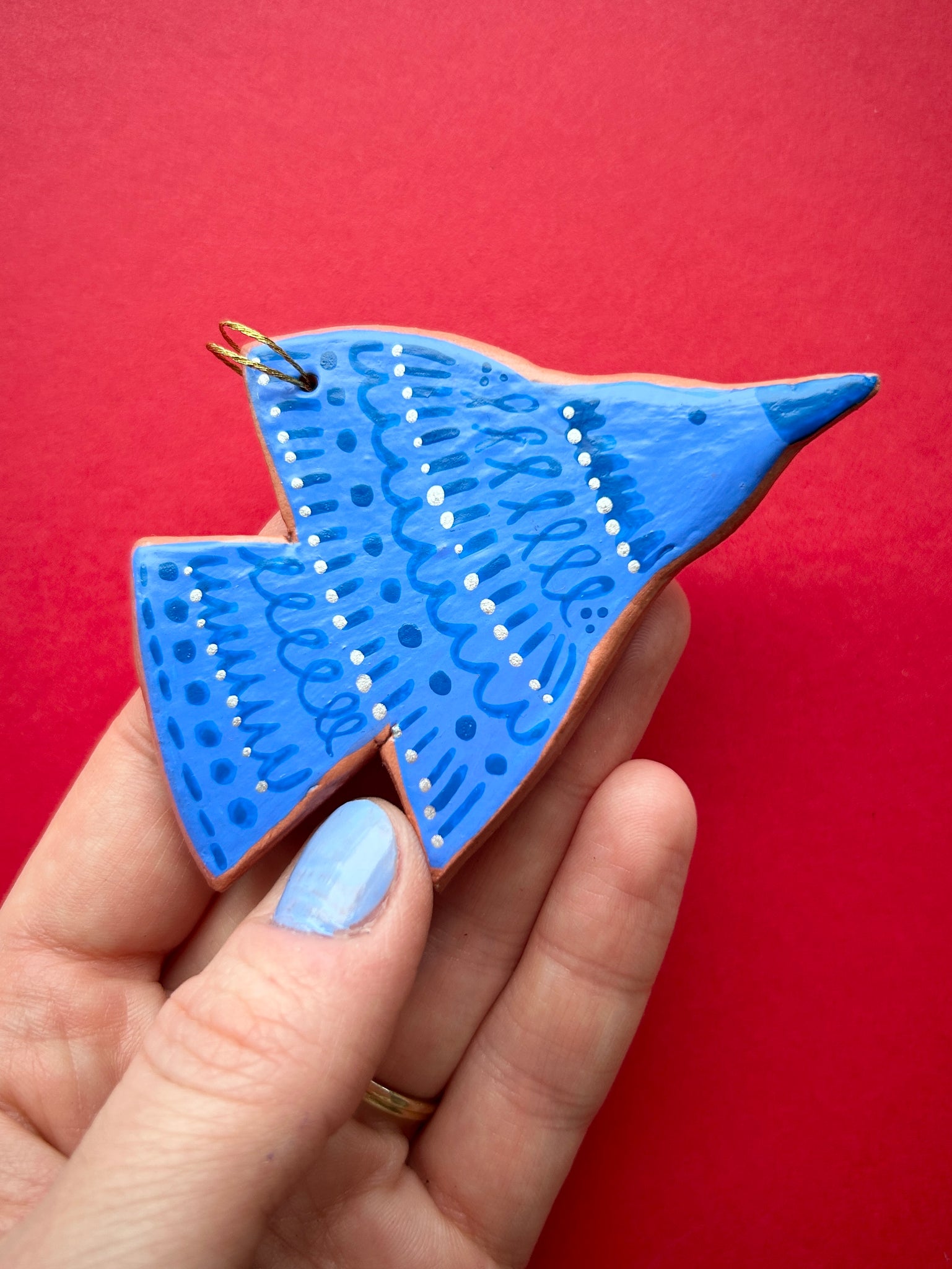 This listing is for one air dry clay bird ornament, hand painted with acryla gouache and sealed with a gentle layer of satin varnish. Ready to hang on your tree, or anywhere! Completely one of a kind. Formed and painted with love, and signed and dated on the back. Please handle with care!