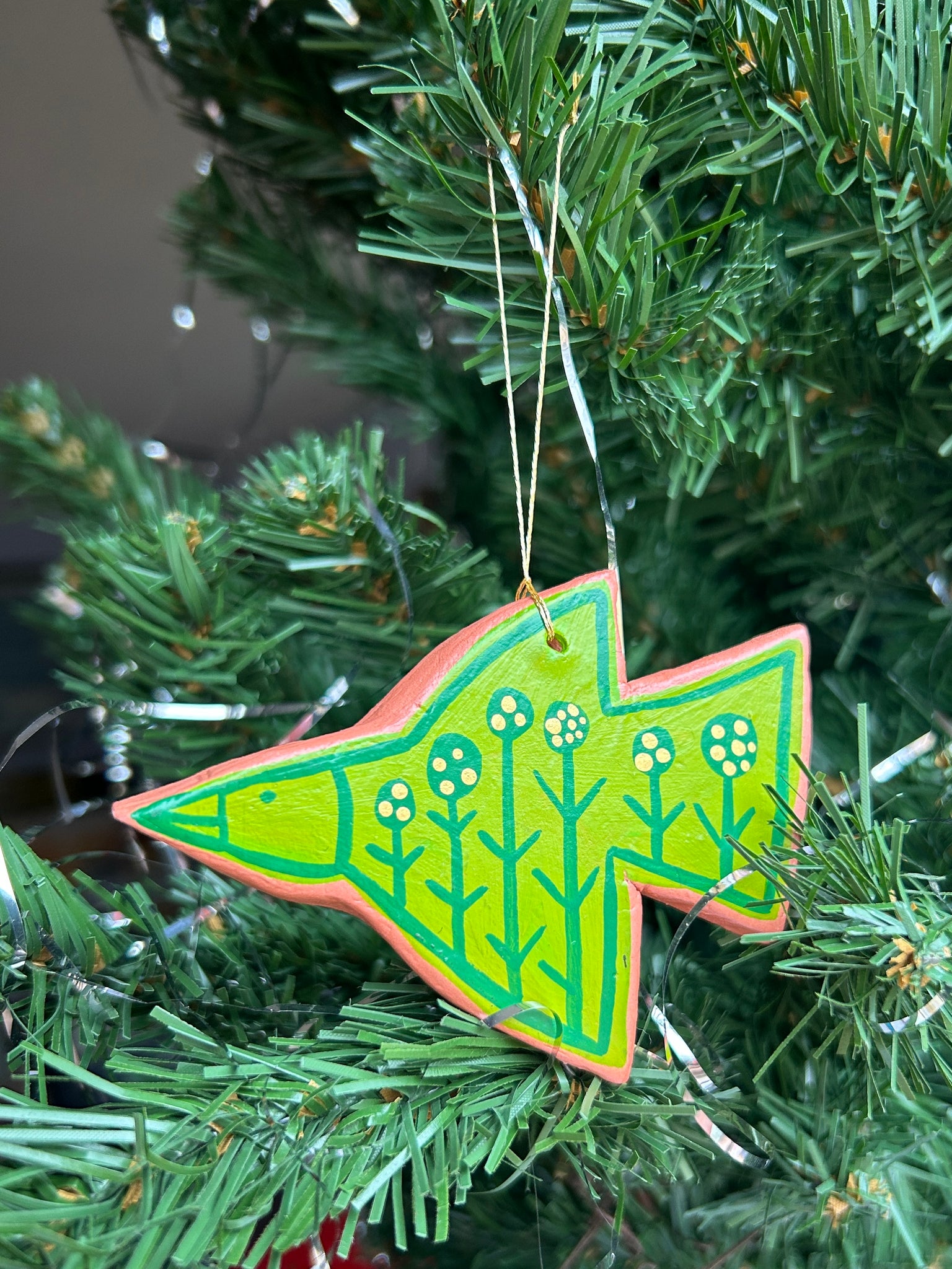 This listing is for one air dry clay bird ornament, hand painted with acryla gouache and sealed with a gentle layer of satin varnish. Ready to hang on your tree, or anywhere! Completely one of a kind. Formed and painted with love, and signed and dated on the back. Please handle with care!