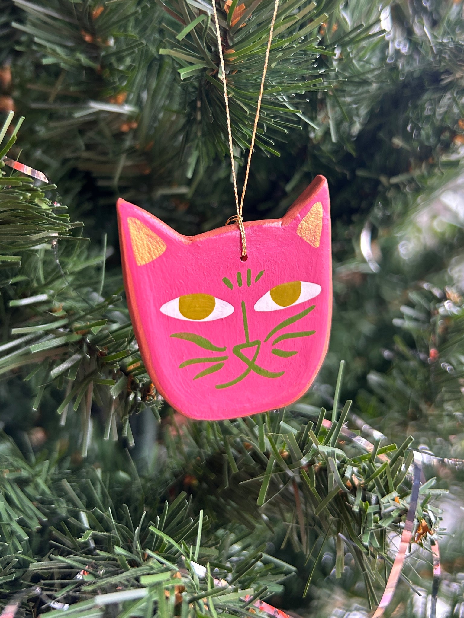 This listing is for one air dry clay cat ornament, handpainted with acrylics and sealed with a gentle layer of satin varnish. Ready to hang on your tree, or anywhere! Completely one of a kind. Formed and painted with love, and signed and dated on the back. Please handle with care!