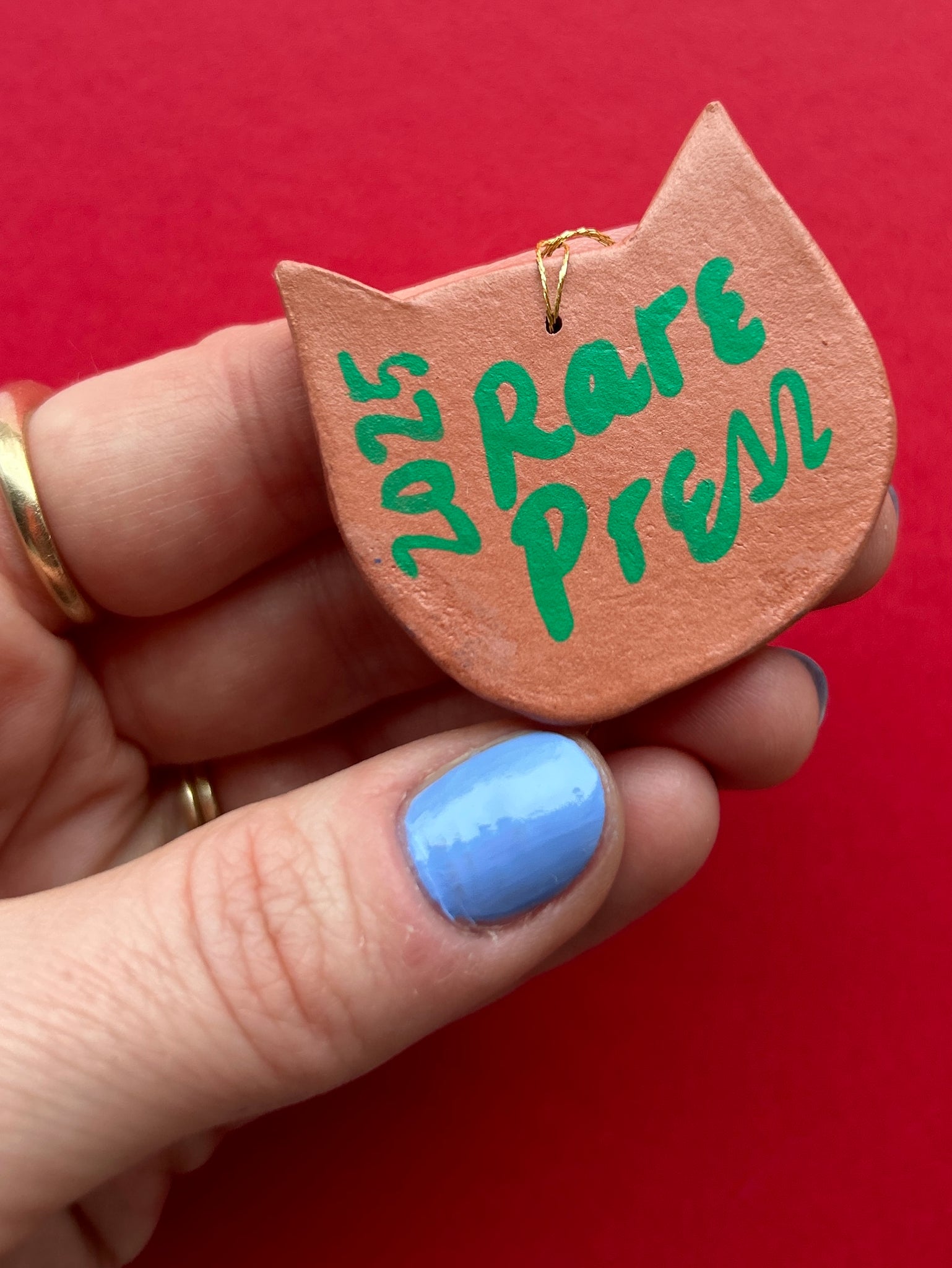 This listing is for one air dry clay cat ornament, handpainted with acryla gouache and sealed with a gentle layer of satin varnish. Ready to hang on your tree, or anywhere! Completely one of a kind. Formed and painted with love, and signed and dated on the back. Please handle with care!