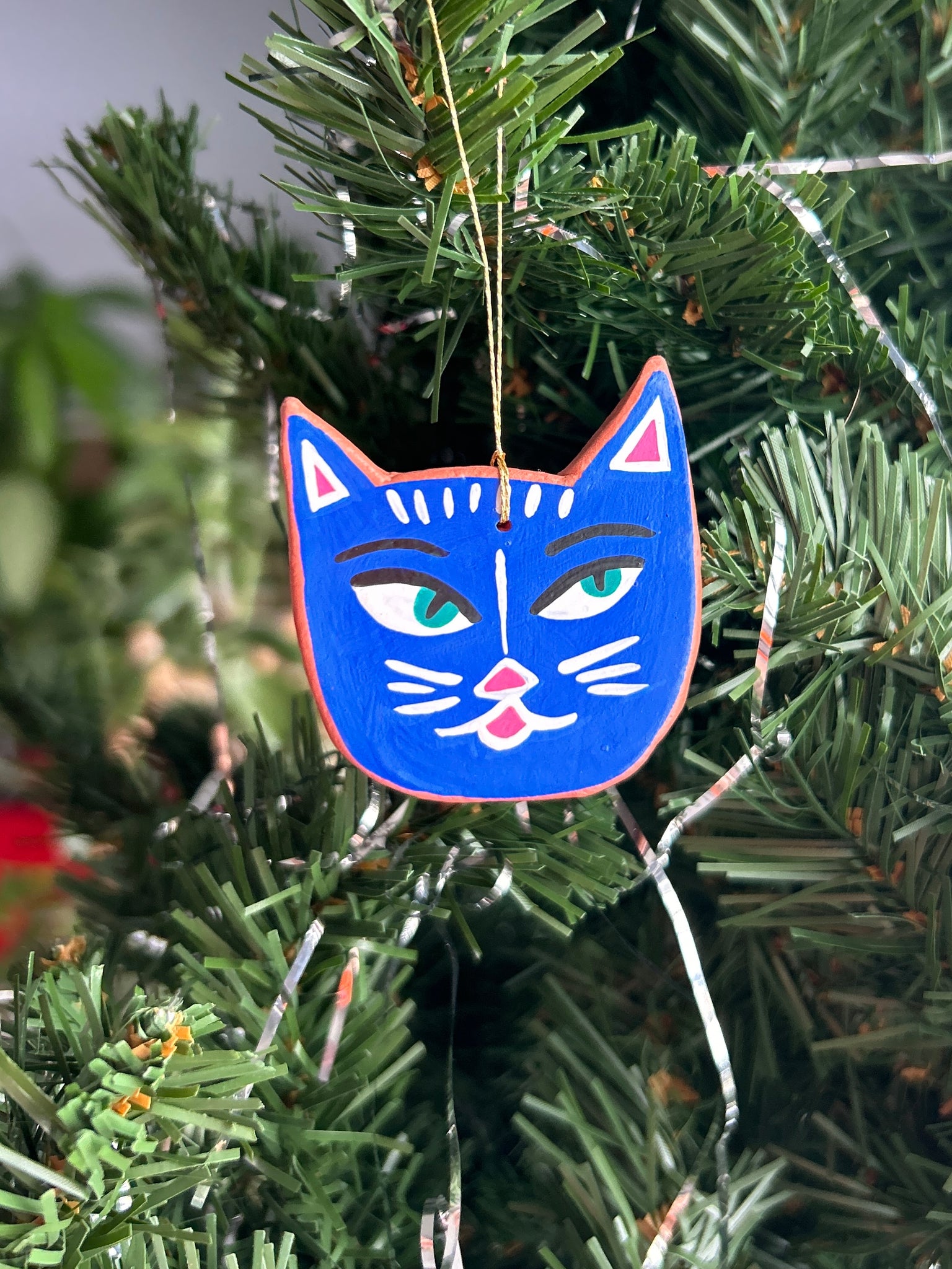 This listing is for one air dry clay cat ornament, handpainted with acryla gouache and sealed with a gentle layer of satin varnish. Ready to hang on your tree, or anywhere! Completely one of a kind. Formed and painted with love, and signed and dated on the back. Please handle with care!