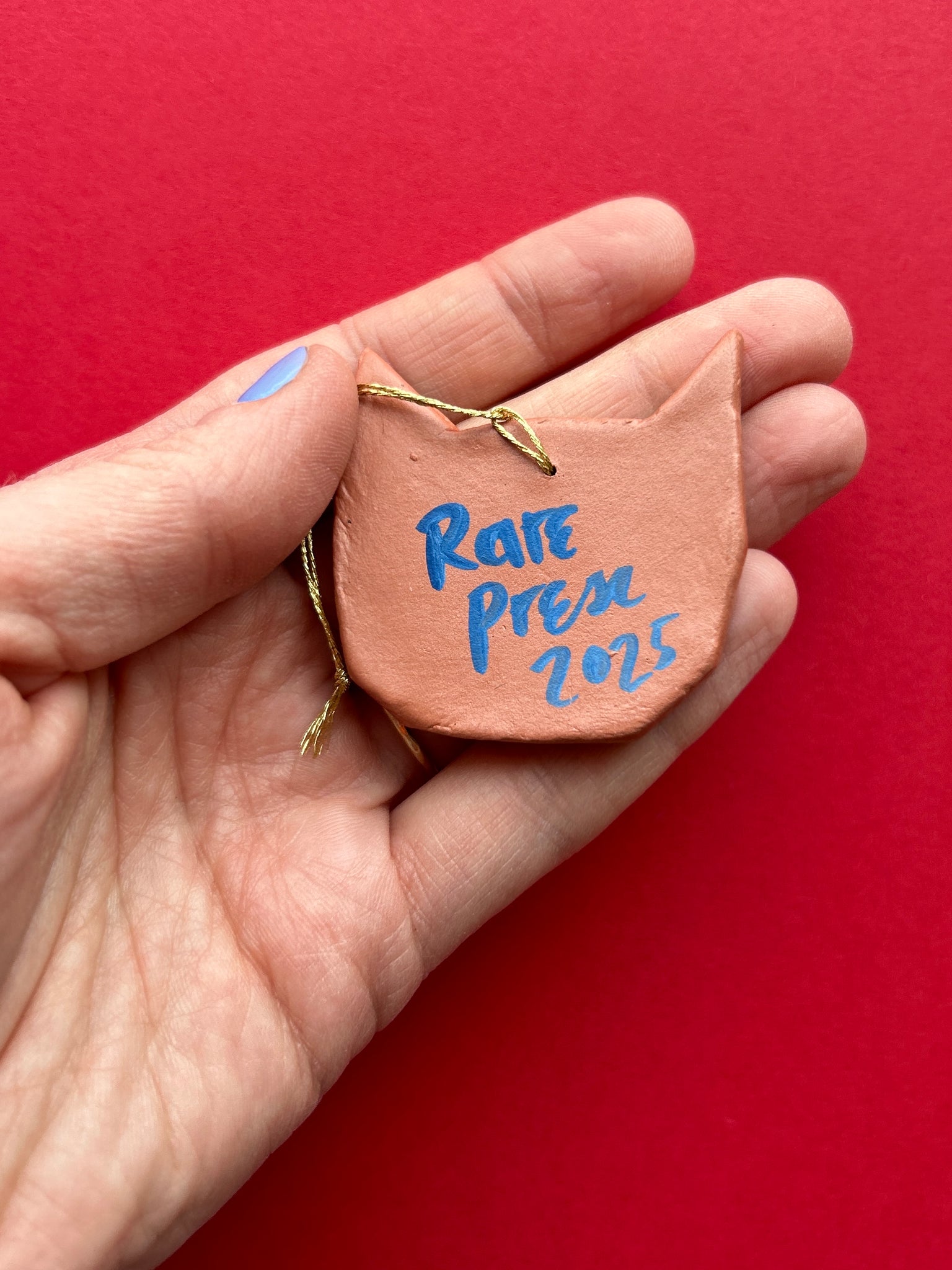 This listing is for one air dry clay cat ornament, handpainted with acryla gouache and sealed with a gentle layer of satin varnish. Ready to hang on your tree, or anywhere! Completely one of a kind. Formed and painted with love, and signed and dated on the back. Please handle with care!