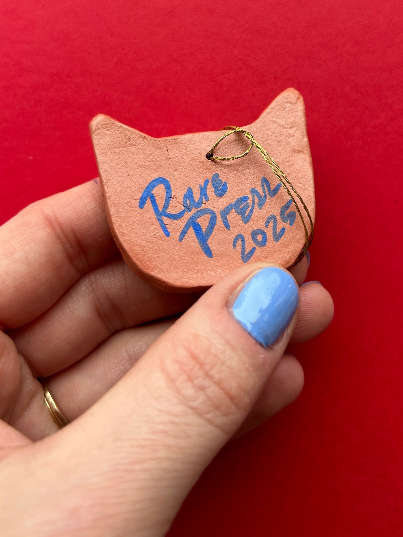 This listing is for one air dry clay cat ornament, handpainted with acrylics and sealed with a gentle layer of satin varnish. Ready to hang on your tree, or anywhere! Completely one of a kind. Formed and painted with love, and signed and dated on the back. Please handle with care!