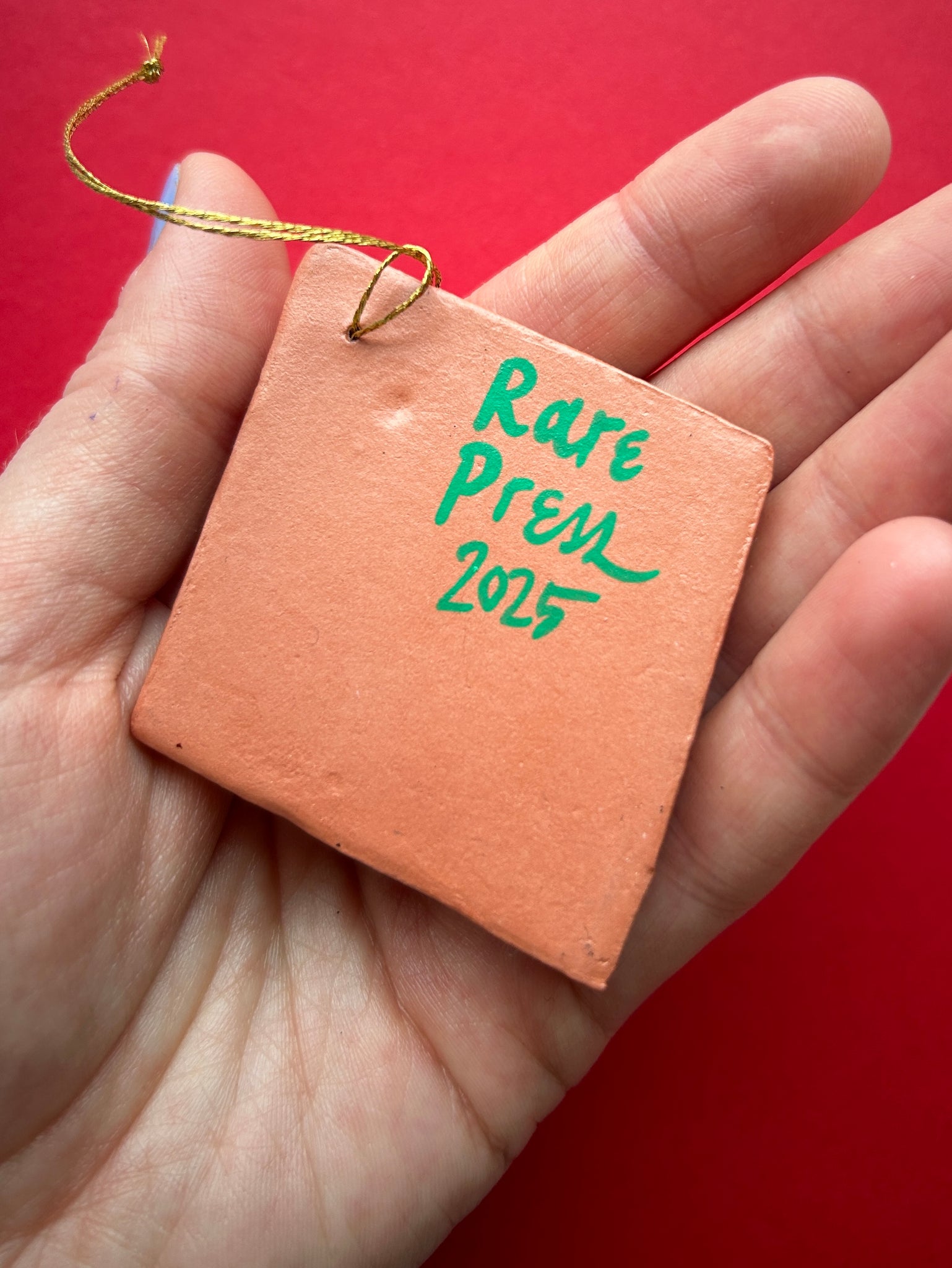 This listing is for one air dry clay diamond ornament, hand painted with acryla gouache and sealed with a gentle layer of satin varnish. Ready to hang on your tree, or anywhere! Completely one of a kind. Formed and painted with love, and signed and dated on the back. Please handle with care!