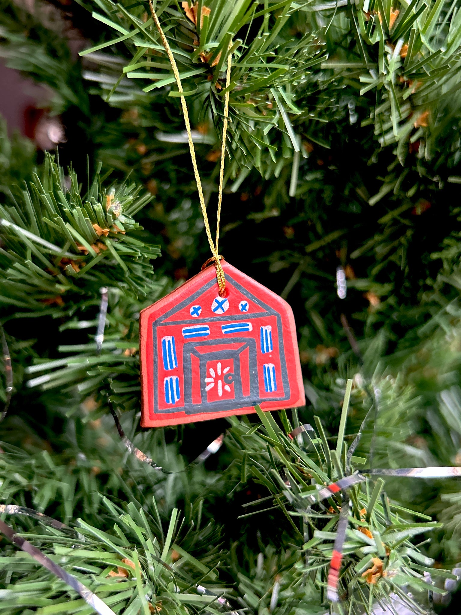 This listing is for one air dry clay house ornament, hand painted with acryla gouache and sealed with a gentle layer of satin varnish. Ready to hang on your tree, or anywhere! Completely one of a kind. Formed and painted with love, and signed and dated on the back. Please handle with care!