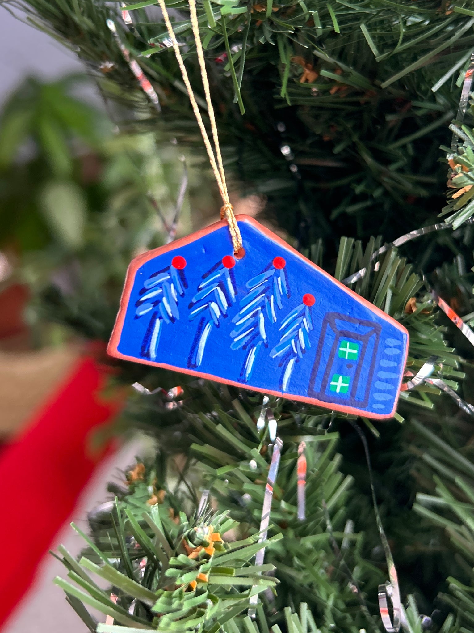 This listing is for one air dry clay house ornament, hand painted with acryla gouache and sealed with a gentle layer of satin varnish. Ready to hang on your tree, or anywhere! Completely one of a kind. Formed and painted with love, and signed and dated on the back. Please handle with care!