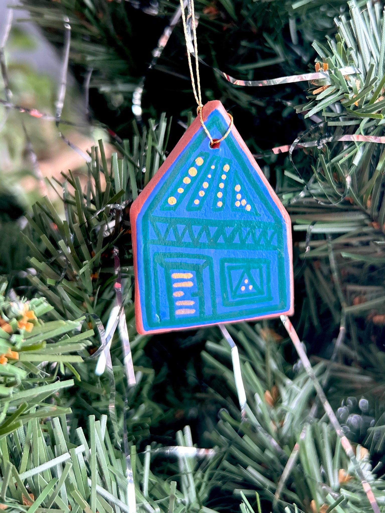 This listing is for one air dry clay house ornament, hand painted with acryla gouache and sealed with a gentle layer of satin varnish. Ready to hang on your tree, or anywhere! Completely one of a kind. Formed and painted with love, and signed and dated on the back. Please handle with care!