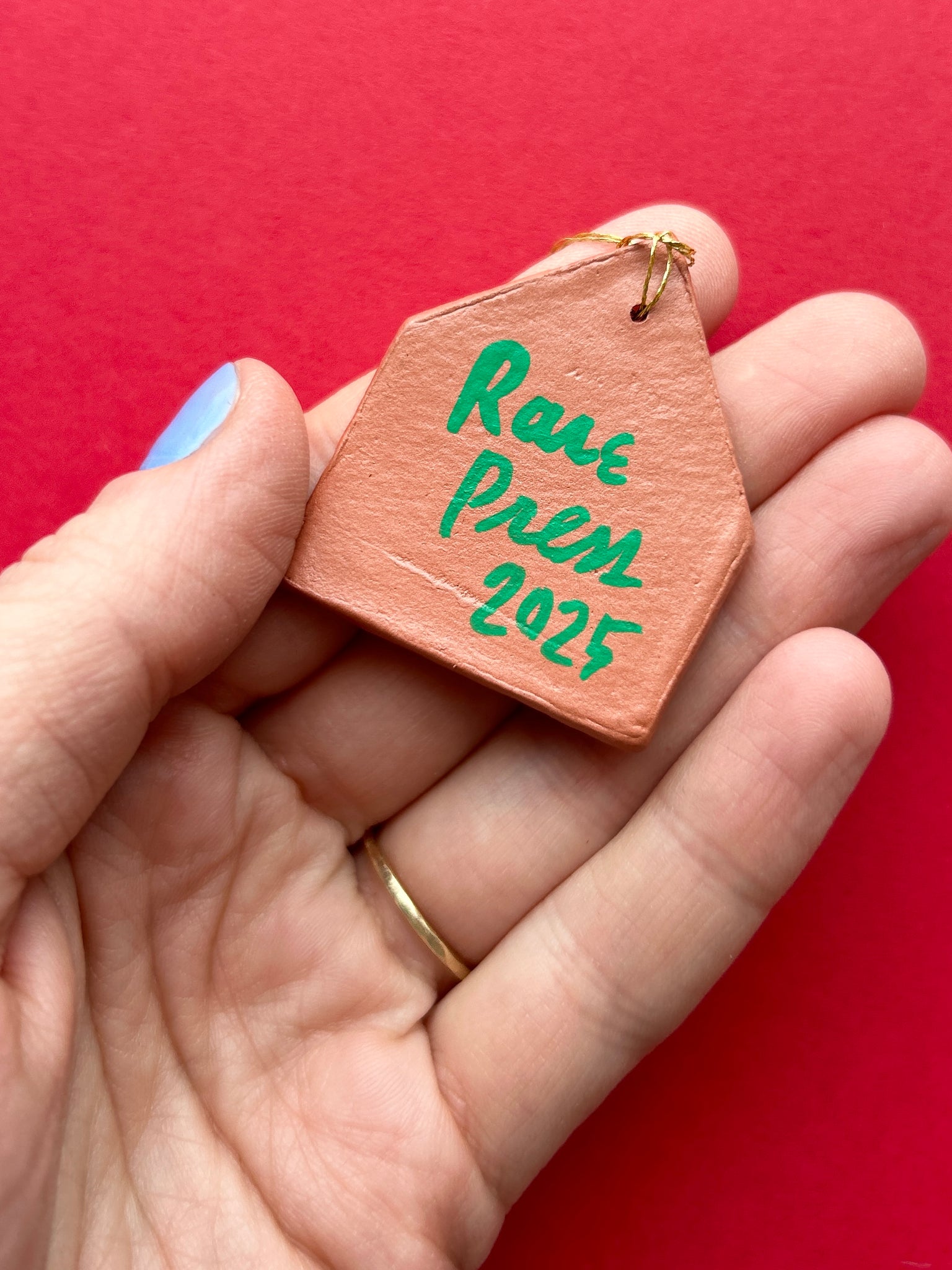This listing is for one air dry clay house ornament, hand painted with acryla gouache and sealed with a gentle layer of satin varnish. Ready to hang on your tree, or anywhere! Completely one of a kind. Formed and painted with love, and signed and dated on the back. Please handle with care!